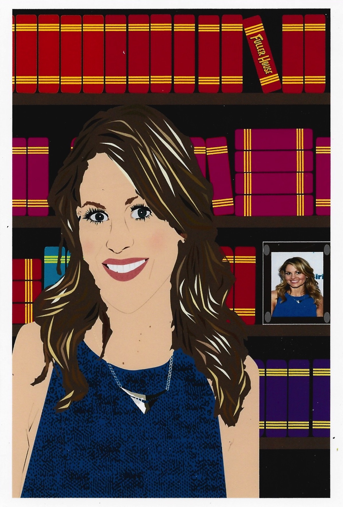 "Candace Cameron" A self portrait sketch of Full House Actress Candace Cameron with the Fuller House logo on one of the books and the reference photo I used.